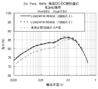 另一方麵,PWM模式指相當於通話狀態的高電流負荷狀態,此模式與電感的Rdc特性(直流阻抗)有關,具有低Rdc性能的LQM係列在此領域具有良好的電源轉換效率。