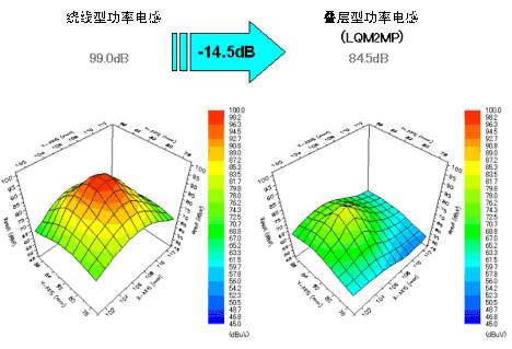 圖6顯示了繞線型功率電感和疊層型功率電感的磁束泄漏監測數據。與一直以來作為DC-DC轉zhuan換huan器qi上shang使shi用yong的de主zhu要yao功gong率lv電dian感gan的de繞rao線xian型xing功gong率lv電dian感gan相xiang比bi,疊die層ceng型xing功gong率lv電dian感gan的de磁ci束shu泄xie漏lou更geng少shao,現xian已yi證zheng實shi閉bi合he磁ci路lu的de構gou造zao使shi磁ci束shu泄xie漏lou較jiao少shao。這zhe些xie數shu據ju表biao明ming在zai小xiao型xing高gao速su開kai關guanDC-DC轉換器電路中使用小型疊層型功率電感的情況下,能夠發揮它抗噪特性的特長。
