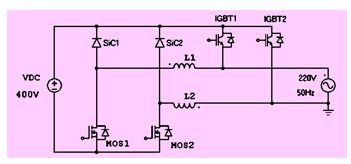 在圖13中,上橋臂igbt的開關頻率一般設定為電網頻率(例如50hz),而下橋臂的mosfet則工作在較高的開關頻率下,例如 16khz,來實現輸出正弦波。仿真顯示,這種逆變器拓撲在2kw額定功率輸出時,效率可以達到99.2%。由於mosfet內置二極管的速度較慢,因此 mosfet不能被用在上橋臂。