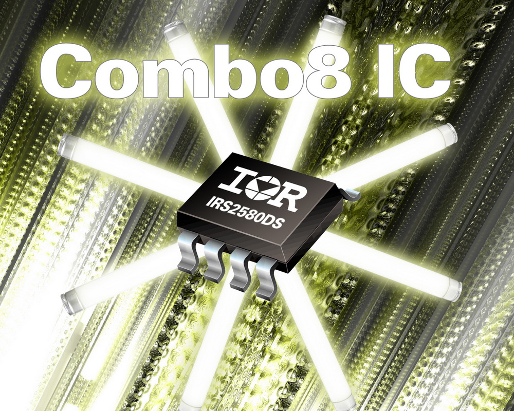 全球功率半導體和管理方案領導廠商國際整流器公司(International Rectifier,簡稱IR)今天推出業界首款集成在單個緊湊型8引腳SO-8封裝的功率因數校正 (PFC) 和鎮流器控製IC —— IRS2580DS Combo8 IC。新器件除了能夠簡化設計,更可以減少整體組件數量,從而能加快節能照明應用的設計過程。