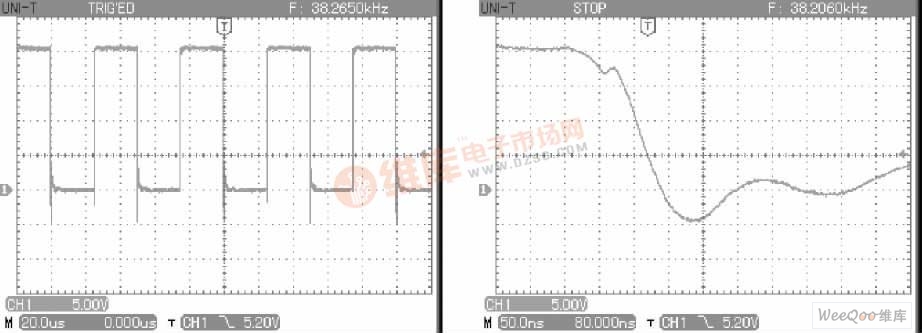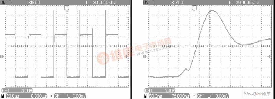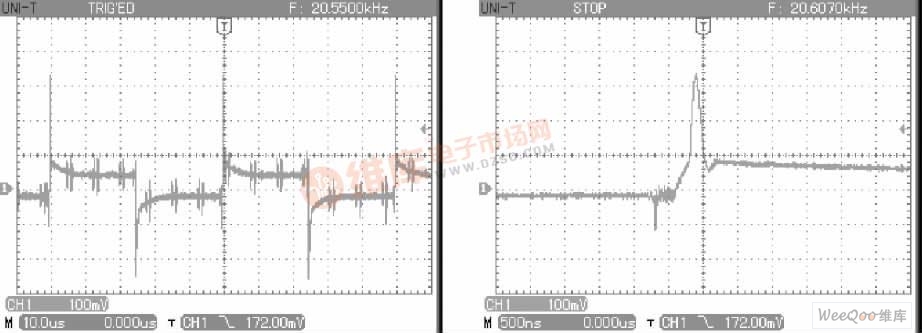 另外,開通過程中,由於二極管D1的反向恢複電流IRM將疊加在集電極電流iC上,這也會使IGBT實際流過的電流存在一個尖峰,這一尖峰可通過串聯在回路中的電阻上的電壓波形觀察。