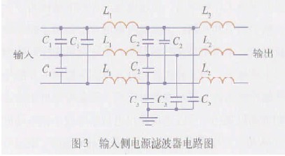 (2)輸入側電源濾波器參數圖3 為常用輸入側電源濾波器的電路圖,輸入側接電源,輸出側接變頻器。
