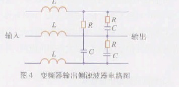 (2)變頻器輸出側濾波器參數圖4 為常用變頻器輸出側濾波器的電路圖。變頻器輸出側濾波器的輸入側接變頻器,輸出側接電動機。