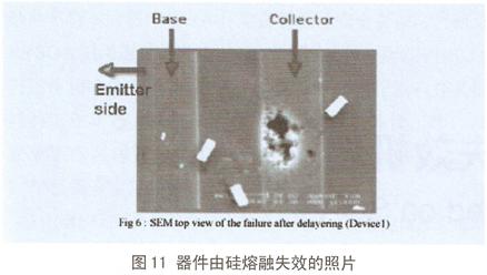 當E=EC時,器件失效模式不明確。當能量等於或稍等於EC時,器件關斷後,器件的拖尾電流,經過一段延遲時間td f ,將導致熱擊穿。這段延緩性失效時間為微秒級。