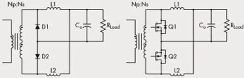 從cong拓tuo撲pu的de角jiao度du來lai看kan,同tong步bu整zheng流liu器qi的de傳chuan導dao損sun耗hao和he開kai關guan損sun耗hao都dou更geng低di,能neng夠gou提ti高gao這zhe些xie轉zhuan換huan級ji的de效xiao率lv,因yin而er是shi開kai關guan模mo式shi電dian源yuan次ci級ji端duan的de基ji本ben構gou建jian模mo塊kuai,在zai服fu務wu器qi電dian源yuan或huo電dian信xin整zheng流liu器qi等deng低di壓ya及ji大da電dian流liu應ying用yong中zhong非fei常chang流liu行xing。如ru圖tu1所示,它取代了肖特基整流器,可使電壓降變得更小。從器件角度來看,過去十年中,功率MOSFET晶體管的進展巨大,催生出了新穎的拓撲和高功率密度電源。20世紀早期平麵技術問世之後,中低電壓MOSFET迅速被開發出來,利用溝槽柵技術來大幅提高性能。溝槽柵MOSFETshizhongdidianyadianyuanyingyongdeshouxuangonglvqijian,qibayigezhajijiegouqianrudaojingxinshikezaiqijianjiegoushangdegoucaoquyuzhong。zhezhongxinjishukeyitigaogoucaomidu,bingwuxuJFET阻抗元件,因此能夠使特征導通阻抗降低30%左右。當MOSFET的導通阻抗與漏極電流的乘積小於二極管正向電壓降時,同步整流的能量損耗降低。