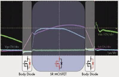 除了RDS(ON)和QG之外,同步整流結構中的其它參數,如體二極管反向恢複、內部柵極阻抗以及MOSFET的輸出電荷(QOSS),現在也變得更具相關性。在開關頻率和輸出電流較高時,這些損耗元件的重要性便更為明顯。飛兆半導體的中壓MOSFET產品現在開始針對二極管反向恢複以及輸出電容的最小化進行優化。