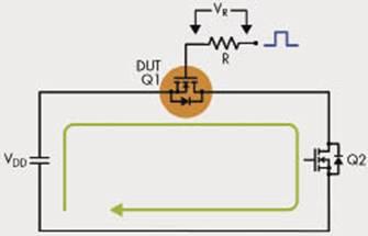 鑒於這種順序,應該謹慎選擇式1中的柵極電荷值。由於導通瞬間同步開關上無電壓,這時不會發生“米勒效應”。因此,得到的柵極電荷值近似等於總柵極電荷QG減去柵極電荷的柵漏極部分QGD。不過,這仍然是對驅動損耗的樂觀估計,實際中,同步開關的柵極電荷值並不等於簡單的QG-QGD估算值,這是因為在同步整流中,漏極和源極之間存在一個負偏壓,而數據手冊中的QG和QGD是利用正偏壓測得的。而且,Vth以下的QSYNC曲線類似於Vth以上的斜線,因為同步整流中,零電壓開關期間這兩個區域的漏源電壓都為零。同步整流的柵極電荷QSYNC可利用圖6所示的簡單電路,並在Q1和Q2上加載適當的驅動信號來測得。