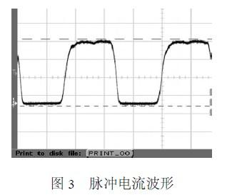 此ci保bao護hu電dian路lu已yi經jing應ying用yong於yu實shi踐jian,由you於yu限xian流liu措cuo施shi穩wen定ding可ke靠kao,半ban導dao體ti激ji光guang器qi的de使shi用yong壽shou命ming得de到dao了le保bao證zheng。利li用yong功gong率lv器qi件jian的de開kai通tong與yu關guan斷duan強qiang製zhi吸xi收shou和he隔ge離li浪lang湧yong衝chong擊ji,使shi得de在zai脈mai衝chong工gong作zuo狀zhuang態tai下xia的de浪lang湧yong衝chong擊ji也ye被bei很hen好hao地di抑yi製zhi,圖tu3是電源工作在脈衝狀態下,負載實際的電壓波形。