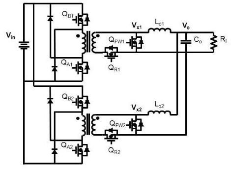 圖1:雙相交錯式雙開關正向轉換器