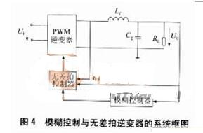 將(jiang)輸(shu)出(chu)電(dian)壓(ya)和(he)濾(lv)波(bo)電(dian)感(gan)電(dian)流(liu)反(fan)饋(kui),即(ji)電(dian)壓(ya)誤(wu)差(cha)和(he)電(dian)感(gan)電(dian)流(liu)作(zuo)為(wei)輸(shu)入(ru)模(mo)糊(hu)變(bian)量(liang),可(ke)以(yi)實(shi)現(xian)逆(ni)變(bian)器(qi)的(de)模(mo)糊(hu)控(kong)製(zhi),整(zheng)流(liu)性(xing)負(fu)載(zai)時(shi),其(qi)輸(shu)出(chu)電(dian)壓(ya)總(zong)諧(xie)波(bo)失(shi)真(zhen)(total harmonic distortion,TH)小於5%,將模糊控製與無差拍控製相結合,可用來補償由於非線性負載導致的電壓降落,其係統如圖4所suo示shi。模mo糊hu控kong製zhi從cong模mo仿fang人ren的de思si維wei外wai特te性xing入ru手shou,模mo仿fang人ren的de模mo糊hu信xin息xi處chu理li能neng力li。它ta對dui係xi統tong的de控kong製zhi是shi以yi人ren的de經jing驗yan為wei依yi據ju的de,而er人ren的de經jing驗yan正zheng是shi反fan映ying人ren在zai思si維wei過guo程cheng中zhong的de判pan斷duan、推理、歸gui納na。理li論lun上shang已yi經jing證zheng明ming,模mo糊hu控kong製zhi可ke以yi任ren意yi精jing度du逼bi近jin任ren何he線xian性xing函han數shu,但dan受shou到dao當dang前qian技ji術shu水shui平ping的de限xian製zhi,模mo糊hu變bian量liang的de分fen檔dang和he模mo糊hu規gui則ze都dou受shou到dao一yi定ding的de限xian製zhi,隸li屬shu函han數shu的de確que定ding還hai沒mei有you統tong一yi的de理li論lun指zhi導dao,帶dai有you一yi定ding的de人ren為wei因yin素su,因yin此ci,模mo糊hu控kong製zhi的de精jing度du有you待dai於yu進jin一yi步bu提ti高gao。