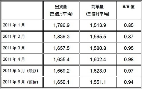 最新消息,據外媒報道,根據SEMI最新Book-to-Bill訂單出貨報告,2011年6月份北美 半導體 設備製造商三個月平均訂單金額為15.5億美元,B/B值 (Book-to-Bill Ratio,訂單出貨比 )為0.94.代表半導體設備業者三個月平均出貨100美元,接獲94美元的訂單。