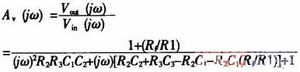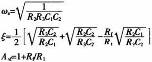 通過上式可以求出該有源濾波器的一些參數,如自然角頻率ωn阻尼係數ξ和閉環增益Avf等: