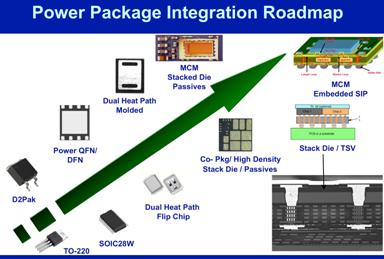 當前功率半導體封裝的主要趨勢是增強互連,包括旨在降低阻抗/寄生效應的晶圓級技術,以及增強型片上散熱。厚銅、金或鋁線邦定、緞帶(ribbon)/封裝黏著(clip bonding) ,以及功率優化的芯片級封裝(CSP)也在增強裸片與外部電極之間的電阻連接效率。下圖顯示了封裝技術的演進。