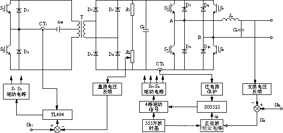 傳統車載電源一般采用逆變器加工頻變壓器的方案,它存在體積大、效xiao率lv低di等deng缺que陷xian。隨sui著zhe新xin型xing電dian力li電dian子zi器qi件jian和he電dian力li電dian子zi技ji術shu的de發fa展zhan,采cai用yong高gao頻pin鏈lian的de方fang案an來lai實shi現xian無wu工gong頻pin變bian壓ya器qi的de逆ni變bian電dian路lu,可ke以yi很hen好hao地di解jie決jue傳chuan統tong車che載zai電dian源yuan存cun在zai的de問wen題ti,同tong時shi能neng保bao證zheng車che載zai電dian源yuan的de輸shu出chu電dian壓ya更geng穩wen定ding、更平滑[1]。