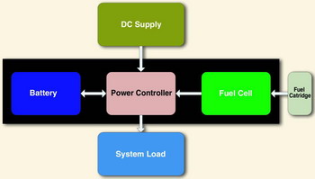 上述係統在使用的不同階段,能夠用做三種能源和兩種負載。當該係統沒有插接直流電源時,燃料電池和/或(huo)蓄(xu)電(dian)池(chi)的(de)組(zu)合(he)結(jie)構(gou)能(neng)夠(gou)為(wei)係(xi)統(tong)負(fu)載(zai)供(gong)電(dian)。另(ling)外(wai),當(dang)直(zhi)流(liu)電(dian)源(yuan)不(bu)存(cun)在(zai)時(shi),燃(ran)料(liao)電(dian)池(chi)還(hai)能(neng)夠(gou)對(dui)蓄(xu)電(dian)池(chi)進(jin)行(xing)充(chong)電(dian),以(yi)盡(jin)可(ke)能(neng)地(di)增(zeng)強(qiang)電(dian)源(yuan)斷(duan)電(dian)末(mo)期(qi)(end-of-power-shutdown)的性能,或者實現更好的係統動態電源響應特性。當直流電源可用時,它既對蓄電池進行充電也對係統負載進行供電。