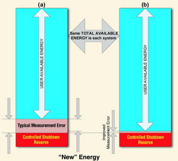 受shou控kong關guan斷duan必bi須xu要yao考kao慮lv測ce量liang誤wu差cha,以yi確que保bao其qi在zai任ren何he條tiao件jian下xia都dou能neng實shi現xian。對dui測ce量liang總zong可ke用yong電dian量liang的de準zhun確que度du的de提ti高gao將jiang會hui直zhi接jie增zeng加jia用yong戶hu的de可ke用yong電dian量liang。因yin此ci,充chong分fen發fa掘jue能neng源yuan的de潛qian力li將jiang會hui獲huo得de更geng長chang的de運yun行xing時shi間jian(見圖2)。