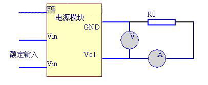 確定了額定負載以後,將開關電源額定輸入電壓接上,接通開關電源的負載回路,在負載回路中串一電流表(為安全計,推薦采用串入精密分流電阻器測其壓降,換算為電流值),測試回路中的電流,用萬用表電壓檔測試開關電源輸出電壓。並記錄電壓電流值。接線圖如2 所示,圖中R0 為額定負載。