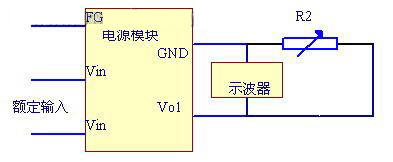 圖中R3 表示一個能產生兩倍於額定負載的電流(即此時R3 的阻值為額定負載的一半),VO+和VO-分別接開關電源的輸出正端和負端。