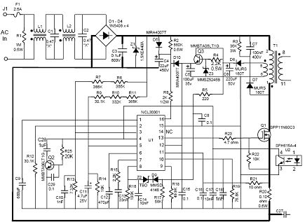 圖2:NCL30001 CVCC 90 W演示板初級側原理圖