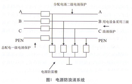 智能儀表控製係統的電源是從配電係統進入計算機主控室。電源係統是從發電廠通過變壓器、配電係統最後供儀表係統使用,在雷暴天氣中電源輸送進由於環韋多途徑長,極可能遭受雷擊,因此此時的電源並不是380v或220v、50Hzjiaoliudian,ershicanzalegezhongzabodelangyongdianya,ruguobushezhifanglangyongbaohuxitong,nameshiyongzhongdedianqishebeihuiyinchaoguonaiyajixianerfashengshigu。jiangzongpeidianjinlaideA、B、C、D三線四相並接至電源浪湧器所相對的A、B、C、Djiexianzhushang。zaileibaoshiganyingleilangyongtongguodianyongbaohuqibaohujiangguozaidianliuhuirudadi,shuchudianyaqianzhizaianquangongzuoqunei,quebaodianyuananquanyunxing。dianyuanfanglangyongxitongrutu1所示。