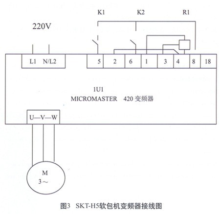 快事達粘膠實業有限公司購進的德國Profil-Clip GmbH公司生產的SKT-H5全自動軟包裝分裝機所采用的變頻器為西門子公司的420變頻器,接線圖如圖3所示,在2009年6月的雷雨天下顯示"F002”故障,表示是過電壓引起,期間共燒毀了三台變頻器,究其原因,是由於電源係統未有采用防雷技術所致。後采用了圖1所示的電源防浪湧係統後,再沒有發生同類故障現象。