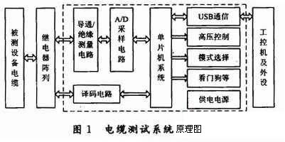 電dian纜lan測ce試shi係xi統tong硬ying件jian部bu分fen以yi單dan片pian機ji為wei控kong製zhi核he心xin,主zhu要yao分fen為wei導dao通tong測ce試shi電dian路lu,絕jue緣yuan測ce試shi電dian路lu和he繼ji電dian器qi譯yi碼ma電dian路lu三san大da部bu分fen,各ge部bu分fen工gong作zuo原yuan理li如ru下xia所suo述shu。
