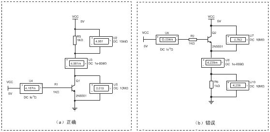 初學者使用晶體管驅動負載時,有時會錯誤地把負載接在晶體管發射極一端,如圖3(b)所示,這樣做負載上得到的功率會比較小。我們可以通過仿真來分析。