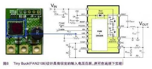 3.最終全集成開關將使功率級設計更迅速易行。除了Digital-DC係列的FD2106之外,FAN210x TinyBuck係列也可為3A FAN2103和6A FAN2106應用提供全集成同步降壓功能(圖8)。