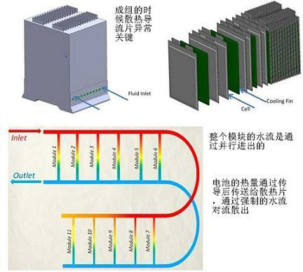 由於液體冷卻隻是把熱量從電池組內部搬移出來,因此需要解決更多的問題,GM目前關於這塊最為完善的,有興趣可以參見VOLT的一些散熱方麵的圖。