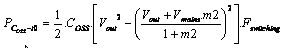 此外,在t0 +時,功率MOSFET的固有電容COSS 被放電,電阻是晶體管的導通電阻RDS(on)。與功率校正電路不同,晶體管漏極上的電壓較低,因為VNS2反射電壓是從VOUT抽取的,這個特性讓BC² 電路具有一個優點,在低輸出負荷時,可以節省電能,利用下麵的公式可以算出節省的電能: