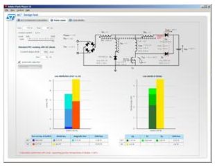 該軟件設計工具可以提供微型線圈和主功率因數校正器的輔助線圈的參數、二極管選型和功率MOSFET的RDS(on)。還可算出每個組件的功率損耗,並與使用一個碳化矽二極管的功率因數校正器對比。
