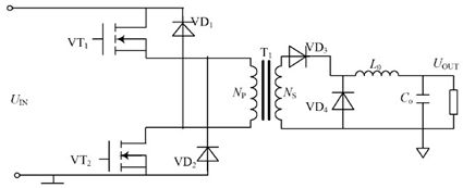 (3) 兩個開關管的工作狀態一致, 會同時處於通態或斷態。所以使用在智能高頻開關電源這樣大功率等級電源中比較適合。