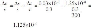 為依據國標QBT2443-1999 的規定計算。規定一級鋼卷尺自零點端起到任意線紋的示值誤差限為:Δ=(0.1+0.1L)mm,L 單位為m。若測試距離取0.3m,Δs 取0.03mm,待測運動物體速度為300m/s,那麼將數據代入式(4)得到係統測速的最大相對誤差為: