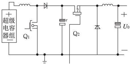 由於光伏陣列受外界環境影響較大, 本係統中12 V的太陽能板輸出電壓的變化範圍約為0~ 20 V,如果直接為鉛酸蓄電池充電, 由於鉛酸蓄電池的正常工作電壓要高於10. 8 V, 因此當弱光條件下, 太陽能板的輸出電壓低於鉛酸蓄電池的端電壓時, 其產生的電能不能被鉛酸蓄電池吸收。因此本係統采用把太陽能板輸出經過超級電容器組, 再由超級電容器組先經升降壓後為鉛酸蓄電池充電, 有效增強係統弱光充電能力, 提高利用效率。