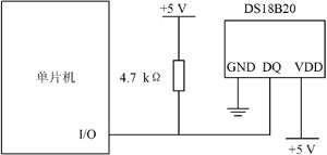采cai用yong獨du特te的de單dan線xian接jie口kou技ji術shu,與yu微wei處chu理li器qi相xiang連lian僅jin需xu一yi根gen端duan口kou線xian即ji可ke實shi現xian雙shuang向xiang通tong信xin,占zhan用yong微wei處chu理li器qi的de端duan口kou較jiao少shao,可ke接jie收shou大da量liang的de引yin線xian和he邏luo輯ji電dian路lu;使用中不需要任何外圍電路,全部傳感元件及轉換電路都集成在形如一隻三極管的集成電路內;測溫範圍- 55~ +125℃,精度可達±0.5℃,可編程9~12位A/D轉換精度,測溫分辨率可達0.0625℃,可實現高精度測溫;測量結果直接輸出數字溫度信號,同時可傳送CRC校驗碼,具有極強的抗幹擾糾錯能力;支持多點組網功能,多個DS18B20可掛在總線上,實現組網多點測溫。適應電壓範圍寬:3.0~5.5V,在寄電源方式下可由數據線供電;DS18B20與單片機連接如圖1所示,單總線器件隻有一根數據線,係統中的數據交換、控製都在這根線上完成,單總線上外接一個4.7Ω的上拉電阻,以保證總線空閑時,狀態為高電平。