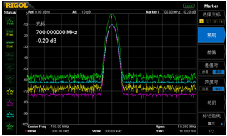 圖三:通過不同顏色的跡線清晰觀察比較改變RBW後的頻譜變化