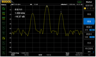 圖四:借助於100Hz RBW,清晰分辨出相鄰的2個信號