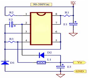 ◇內部集成700V高壓功率開關 ◇電器控製器電源