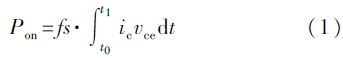在晶體管導通後, 集電極電流從0逐漸變大, 而Vcesat不為0, 因此產生通態損耗。通態損耗可以表示為: