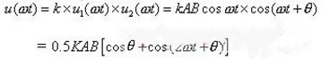 K為模擬乘法器的放大係數。進行低通濾波後濾掉交流成分得: