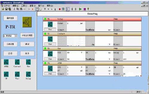 2、編輯模塊,用於器件選擇、分類設置、調試、建立測試程序,初始測試程序的界麵如圖3所示: