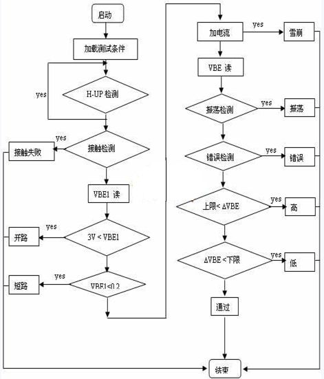 ΔVbe是shi晶jing體ti管guan的de一yi個ge重zhong要yao參can數shu,它ta與yu晶jing體ti管guan的de熱re阻zu有you一yi個ge定ding量liang的de線xian性xing關guan係xi,它ta反fan映ying了le晶jing體ti管guan的de功gong耗hao能neng力li,對dui晶jing體ti管guan的de封feng裝zhuang工gong藝yi及ji失shi效xiao分fen析xi有you著zhe重zhong要yao的de指zhi導dao意yi義yi,對duiΔVbe測試流程如下圖2所示。