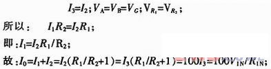 假如溫度的測量範圍是±100℃。在0℃時放大器的輸出電壓為VP=VQ=2.5 V,而這時電流環的輸出電流應IO=4 mA+16/2mA=12 mA。而信號變化產生的電流應該在IOSIGNAL=16 mA/2=8mA。流過RIN的電流應該是I3=8mA/100=80μA。電阻RIN應該是RIN=2.5V/80μA=31.25 kΩ。在100℃時電流環的輸出電流應該是IO=20mA。相對0℃時的輸出增量是△IO=8mA。流過電阻RIN的電流增量應該是△I3=8mA/100=80μA。這時放大器的輸出電壓增量應該是△VP=25 kx80μA=2.5 V。而此時電橋的輸出電壓增量僅僅是△VT=17.56 mV。所以放大器的增益應該為G=2.5 V/17.56 mV=142.37倍。RG=50 k/(G-1)=353.68 Ω。