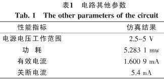 電路的其他方麵的性能仿真結果如表1所示。表1的仿真結果是在電源電壓為3.3 V的de條tiao件jian的de測ce得de的de。有you效xiao電dian流liu指zhi的de是shi在zai電dian路lu正zheng常chang工gong作zuo的de情qing況kuang下xia從cong電dian源yuan到dao地di之zhi間jian的de電dian流liu,關guan斷duan電dian流liu指zhi的de是shi在zai電dian路lu不bu工gong作zuo的de情qing況kuang下xia從cong電dian源yuan到dao地di的de漏lou電dian流liu。