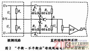 直流電源係統主要負責為電力生產過程中的控製設備、保bao護hu設she備bei等deng供gong電dian。絕jue緣yuan性xing能neng下xia降jiang和he直zhi流liu母mu線xian接jie地di是shi直zhi流liu電dian源yuan係xi統tong常chang見jian的de故gu障zhang。一yi旦dan直zhi流liu電dian源yuan發fa生sheng故gu障zhang後hou,會hui影ying響xiang控kong製zhi設she備bei和he保bao護hu設she備bei的de正zheng常chang工gong作zuo,故gu障zhang嚴yan重zhong時shi甚shen至zhi會hui導dao致zhi控kong製zhi設she備bei的de錯cuo誤wu控kong製zhi和he保bao護hu設she備bei的de拒ju保bao護hu,從cong而er引yin發fa生sheng產chan事shi故gu。因此對直流電源係統的絕緣性能檢測和接地檢測是值得重視的問題。常見的直流接地檢測係統,多采用平衡電橋原理檢測母線的絕緣電阻,采用雙頻探測原理檢測支路的絕緣電阻,並查找接地支路。但平衡電橋原理不能檢測正負母線絕緣電阻等比例下降情況下的電阻值,而雙頻探測原理需要向係統中注入交流信號,會加大直流電源係統的紋波。本文介紹的直流接地檢測係統采用“平衡-不平衡法”檢測母線電壓,采用漏電流傳感器檢測支路絕緣電阻,有效地克服了上述方法的缺陷。