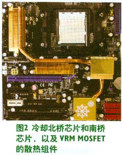 為了應對未來的需求,出現了雙麵封裝技術,可讓主板設計師對高性能應用的MOSFET進行散熱處理,迫使MOSFET廠商成為總體解決方案的供應商。過去,台式電腦在處理器及北橋芯片和南橋芯片上使用散熱片。雖然這在先前的主板設計中不常見(主要是成本原因),但對MOSFET進行散熱已越來越常見。高級主板市場已經開始出現將北橋芯片和南橋芯片上的導熱管連接到VRM的MOSFET散熱片上的散熱組件(見圖2)。