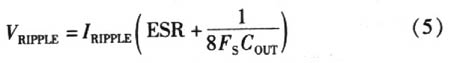輸出電容器(CONT)的選擇受最大允許輸出電壓波紋影響。輸出電壓波紋在固定頻率脈寬調製模式下近似值為: