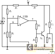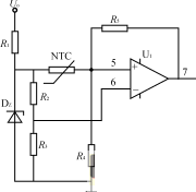 圖4為變壓器過熱保護電路,R3=R4,NTC為粘貼在變壓器上的負溫度係數的熱敏電阻,常溫下RNTCR2,運放U1構成滯環比較器。正常工作時,NTC阻值較大,運放U+<U-,輸出為零;當溫度上升到設定值時,運放U1輸出為高電平,送到PWM控製芯片使輸出脈衝關斷。
