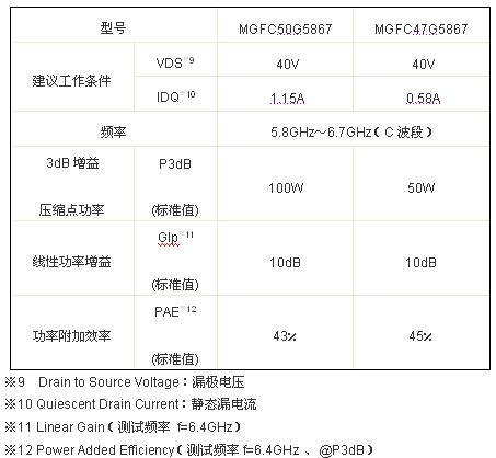 ・大功率,輸出功率分別達到100W(MGFC50G5867)和50W(MGFC47G5867)