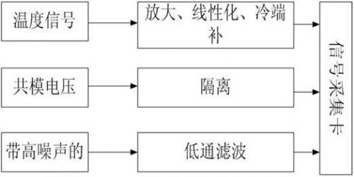 直zhi接jie采cai集ji來lai的de信xin號hao由you於yu噪zao聲sheng等deng原yuan因yin不bu一yi定ding能neng夠gou滿man足zu采cai集ji係xi統tong的de要yao求qiu,為wei了le適shi合he數shu據ju采cai集ji設she備bei的de輸shu入ru範fan圍wei,由you傳chuan感gan器qi生sheng成cheng的de電dian信xin號hao必bi須xu經jing過guo處chu理li。信xin號hao調tiao理li裝zhuang置zhi能neng夠gou按an照zhao要yao求qiu放fang大da或huo者zhe縮suo小xiao電dian壓ya電dian流liu範fan圍wei,並bing對dui信xin號hao進jin行xing隔ge離li濾lv波bo等deng處chu理li。光guang伏fu監jian測ce係xi統tong的de信xin號hao調tiao理li圖tu如ru圖tu3所示。